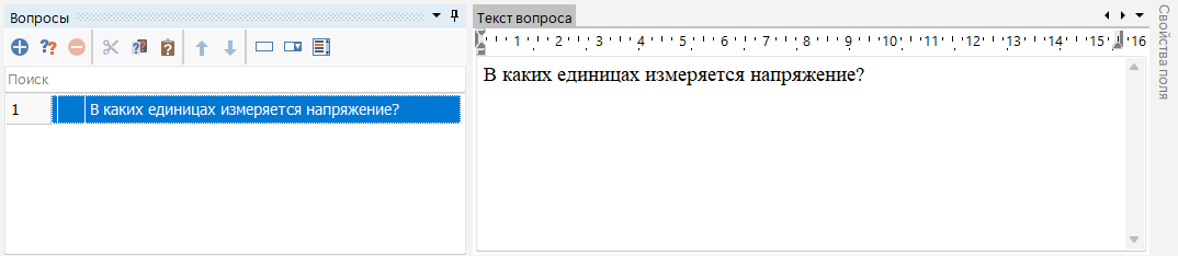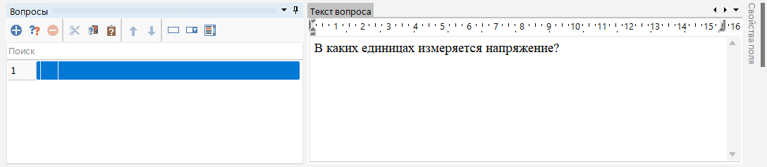 Чтобы добавить вопрос, нажмите клавиши Ctrl+Ins или выберите пункт меню Вопрос/Добавить. Появится еще одна строка в списке вопросов.