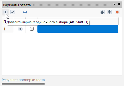 Далее создаются альтернативные варианты ответа на поставленный вопрос, для чего нужно нажать на кнопку для одиночного варианта ответа или кнопку