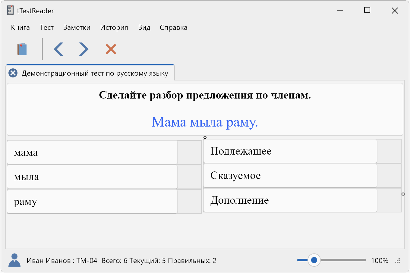 После того как установлено соответствие, для перехода к следующему вопросу достаточно нажать клавишу Enter или щелкнуть по кнопке Следующий.