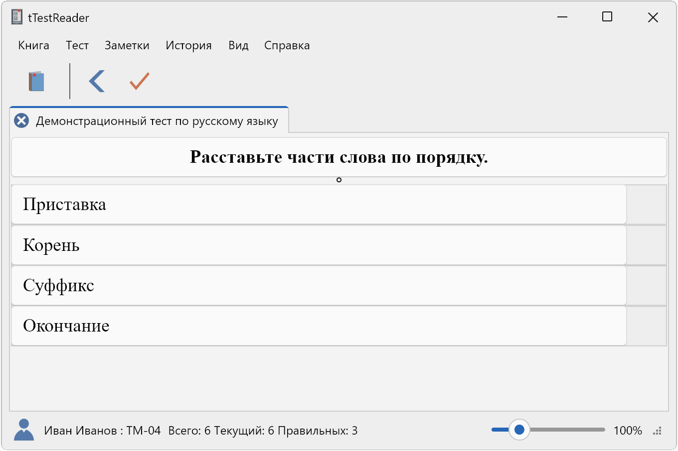 Для реализации данных функций в оболочке SunRav TestOfficePro предусмотрена программа tMaker, позволяющая создавать тесты различного типа и направленности, и программа tTestReader, позволяющая осуществлять процесс тестирования обучающихся (приложение В).