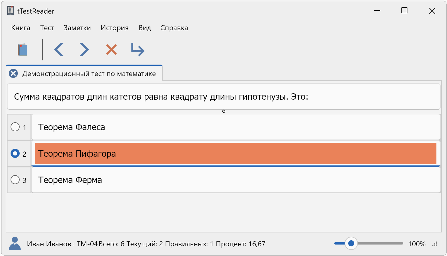 Тестируемому предлагается выбрать один вариант ответа из нескольких предложенных (рисунок 2.19). Для этого нужно выбрать один из пронумерованных кружков. Это можно сделать двумя способами: