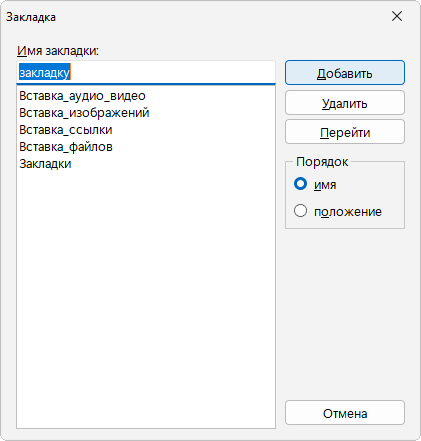 Рисунок 2.17 – Окно для создания закладок |