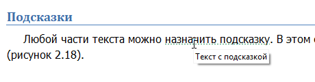 Любой части текста можно назначить подсказку. В этом случае текст подсказки появится над текстом при наведении на него курсора мыши (рисунок 2.18).